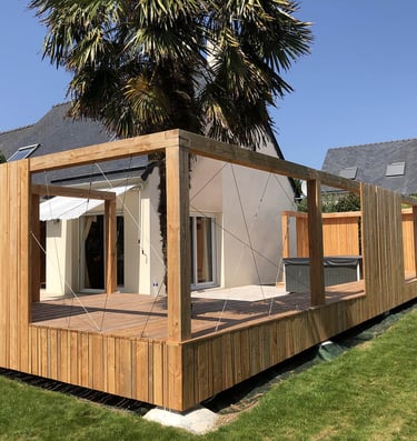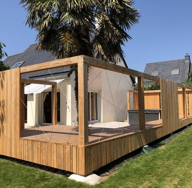 Notre démarche de conception d’aménagements d'extérieur est le fruit d’une rencontre avec le client, ses aspirations, nos compétences, son budget et les disponibilités du bois en atelier. Nous collaborons aussi avec des architectes pour vous accompagner dans vos projets.